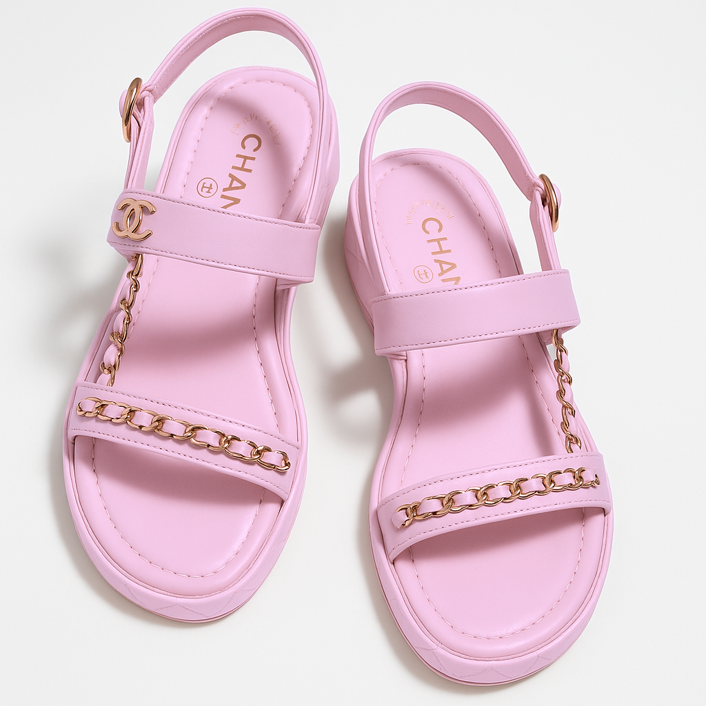 Matériaux: Cuir d'agneau matelassé, chaînes dorées, semelle en caoutchouc